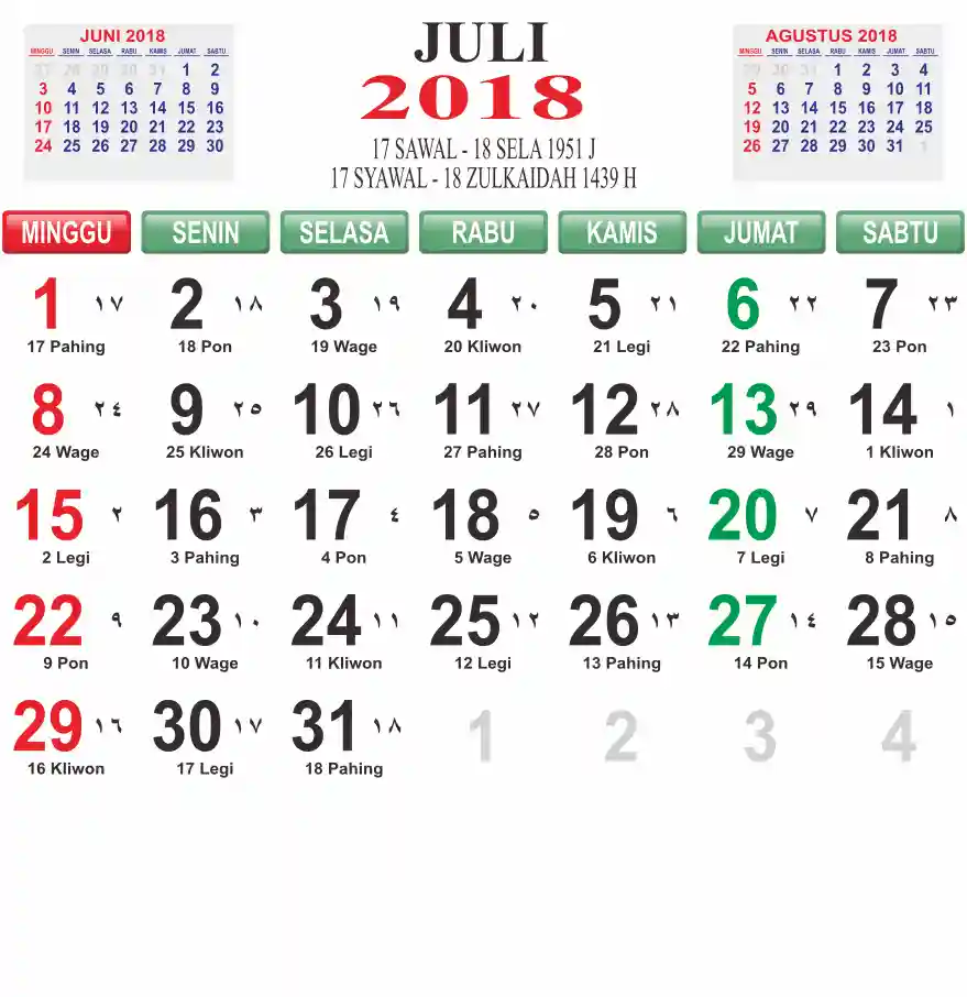 Template kalender 2018 lembaran besar jumbo yang mudah di baca dari jarak jauh. Kalender ini biasanya di cetak 1 lembar per bulan.