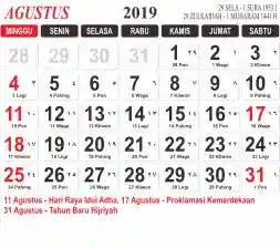 List hari libur tahun 2019 pada Tema 3 (Wide)