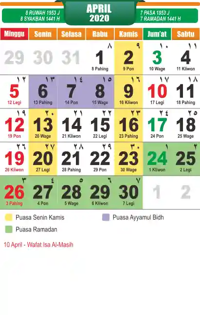 Template kalender puasa 2020, cocok sekali buat anda yang ingin cetak kalender yang bermanfat buat umat.