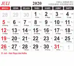 Template Kalender Jawa + Hijriah Vector