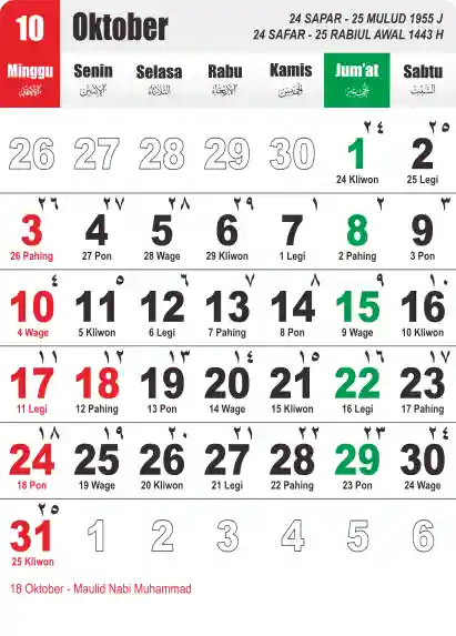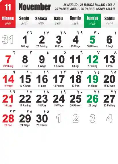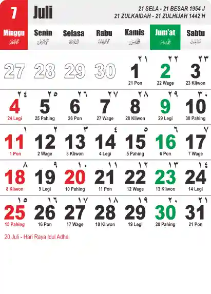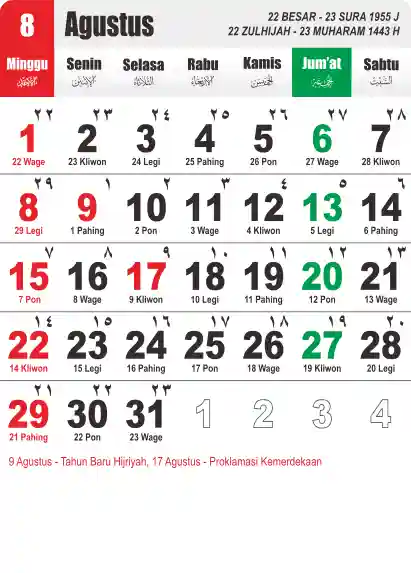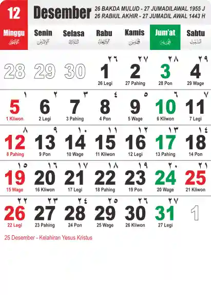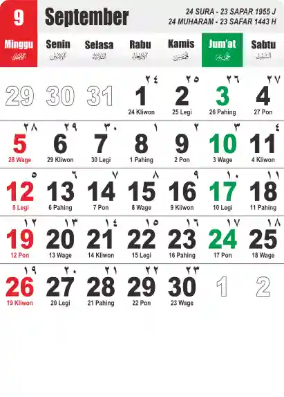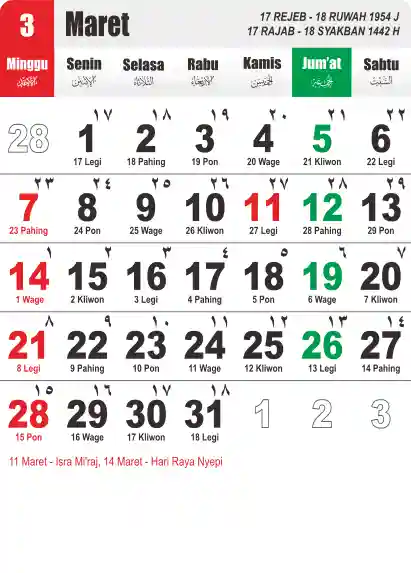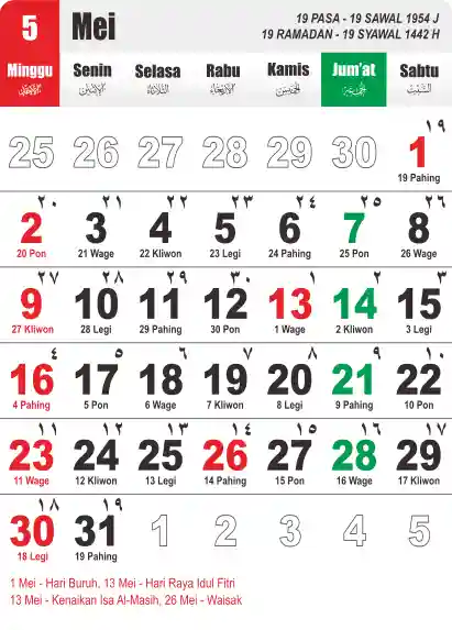 Template Kalender Jawa + Hijriah Vector