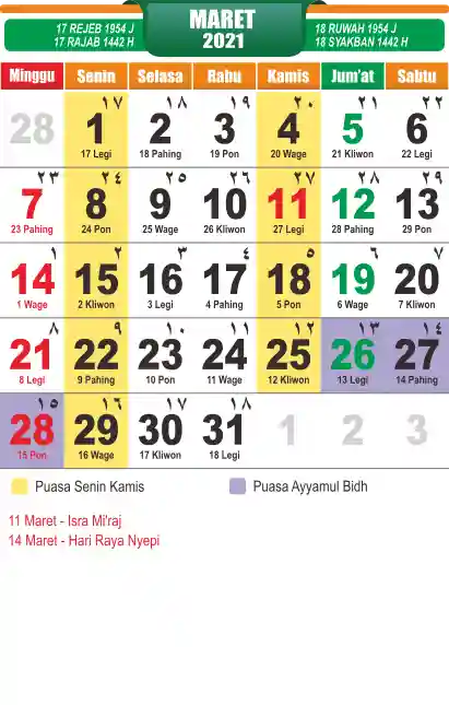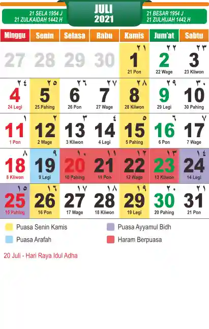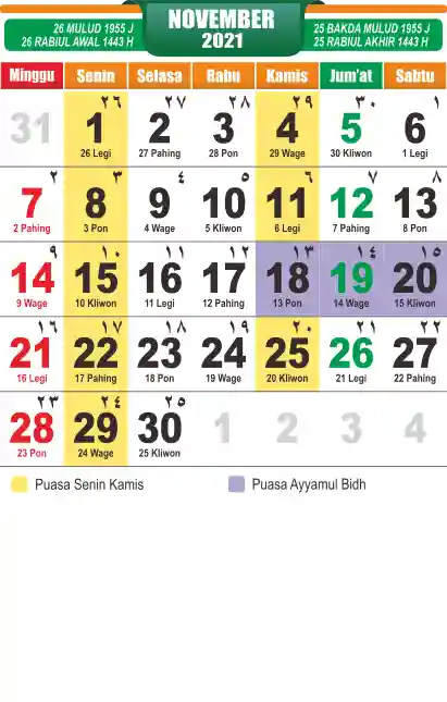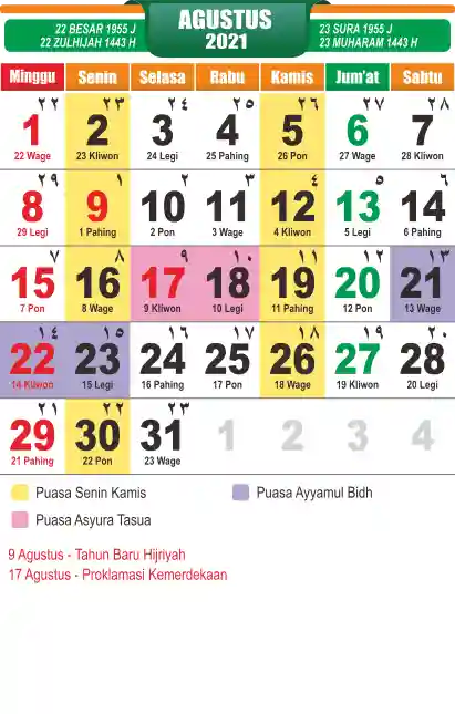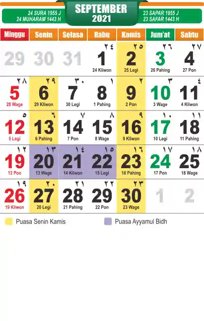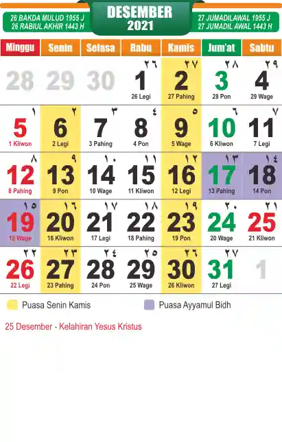 Template Kalender Jawa + Hijriah Vector