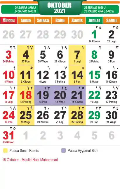 List hari libur tahun 2021 pada Tema 10