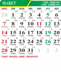 Template Kalender Jawa + Hijriah Vector