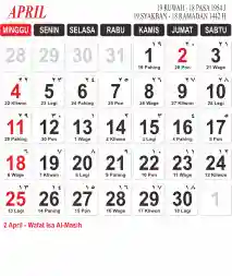Template Kalender Masehi Vector