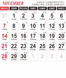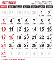 Template Kalender Jawa + Hijriah Vector
