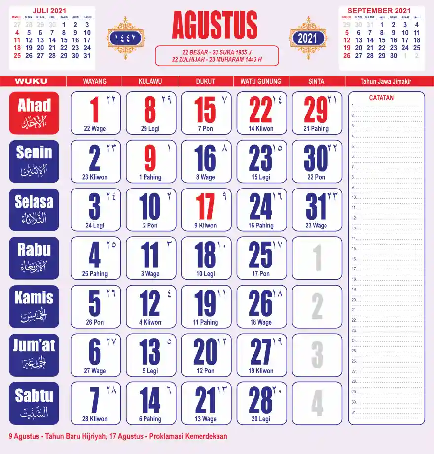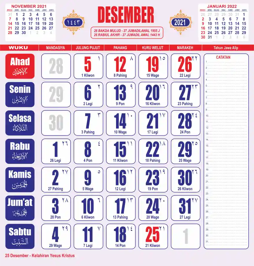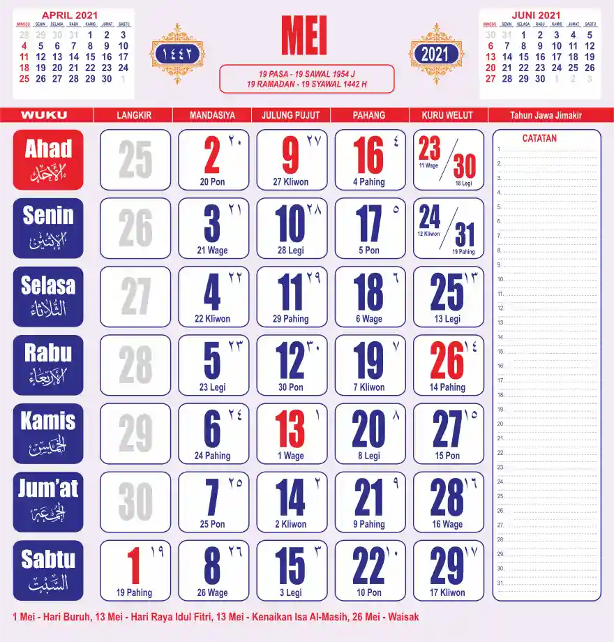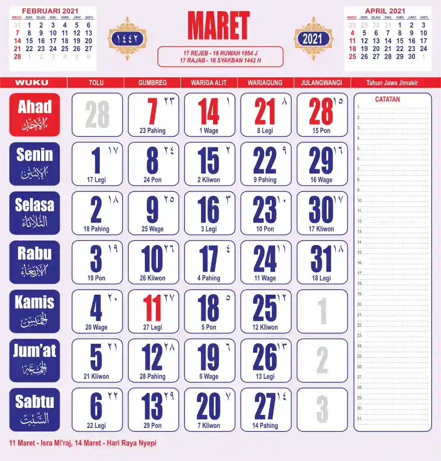 Template kalender 2021 lembaran besar jumbo yang sering dipakai oleh masyarakat jawa lengkap dengan wuku. Kalender ini biasanya di cetak 1 lembar per bulan.