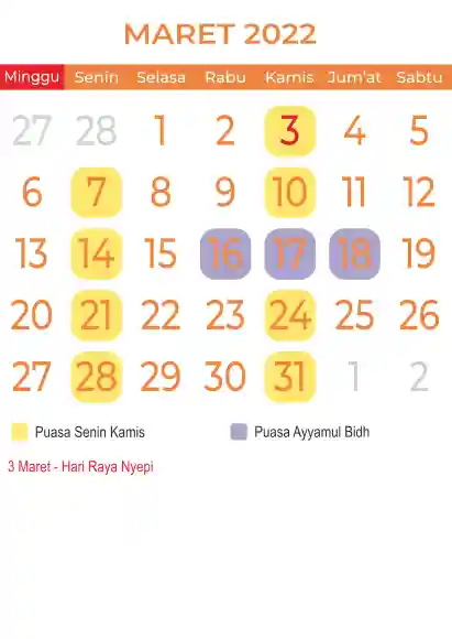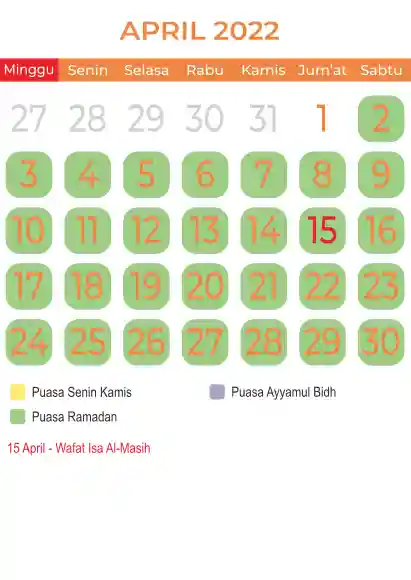 Template kalender puasa 2022, Versi yang lebih simple, cocok sekali buat anda yang ingin cetak kalender yang bermanfat buat umat.