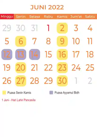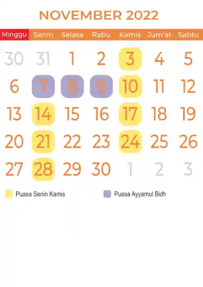 Template Kalender Puasa Vector