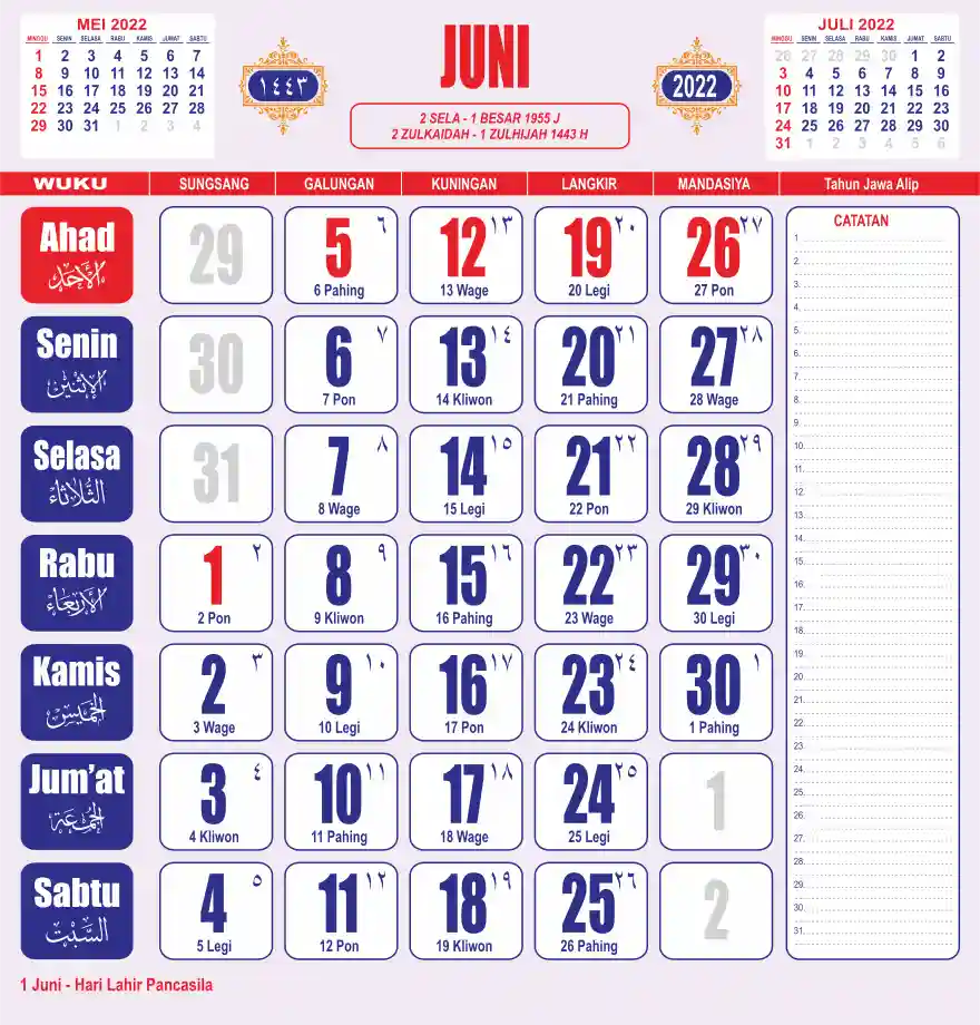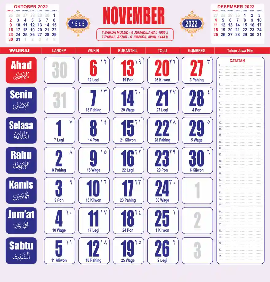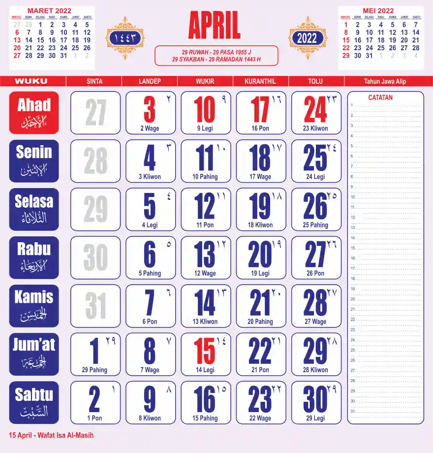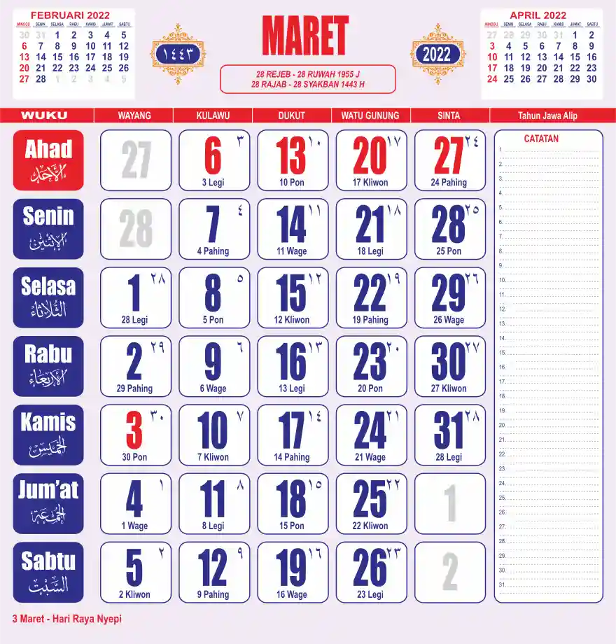 Template kalender 2022 lembaran besar jumbo yang sering dipakai oleh masyarakat jawa lengkap dengan wuku. Kalender ini biasanya di cetak 1 lembar per bulan.