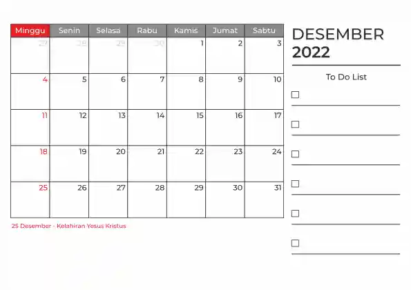 Template kalender 2022 duduk planner. Ada space kosong yang bisa di isi untuk menulis catatan dan ada space untuk menulis to do list.