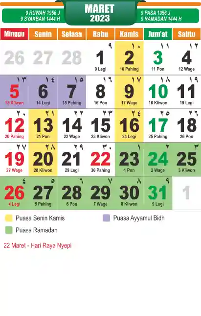 Template kalender puasa 2023, cocok sekali buat anda yang ingin cetak kalender yang bermanfat buat umat.