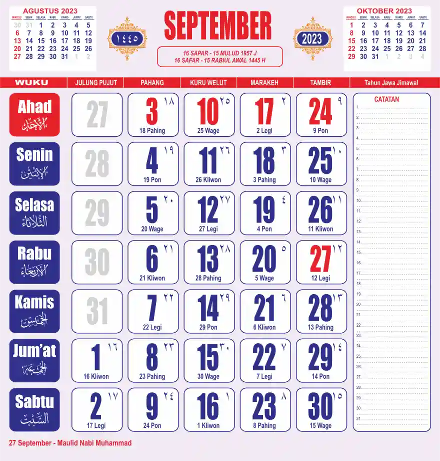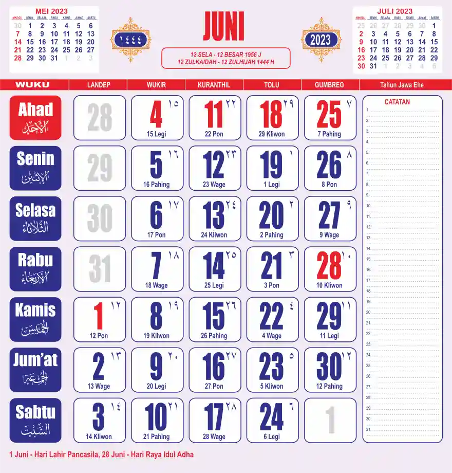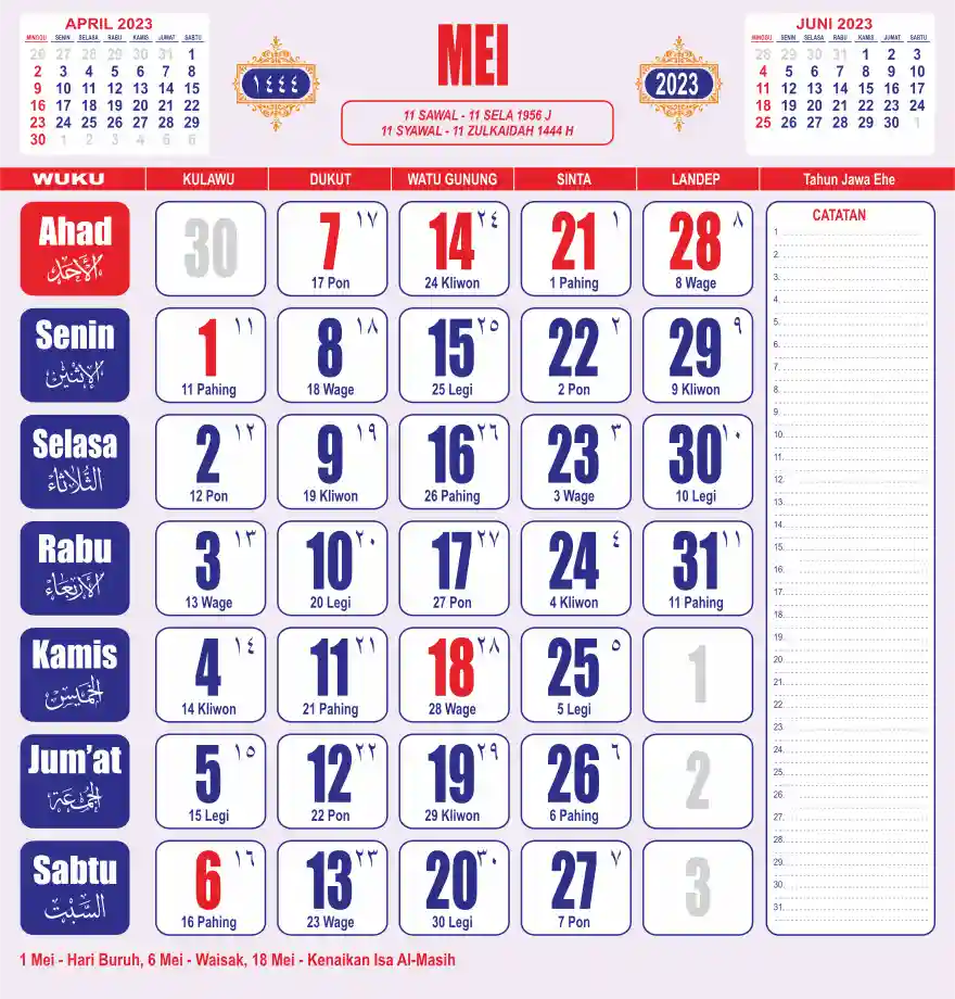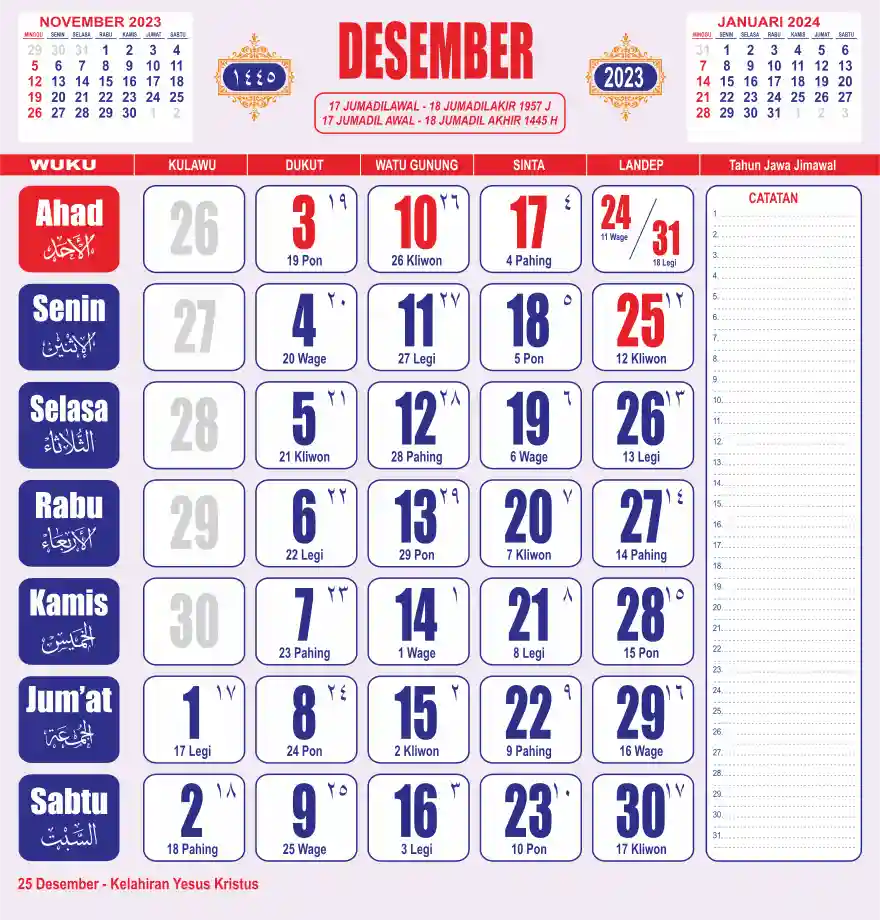Template kalender 2023 lembaran besar jumbo yang sering dipakai oleh masyarakat jawa lengkap dengan wuku. Kalender ini biasanya di cetak 1 lembar per bulan.