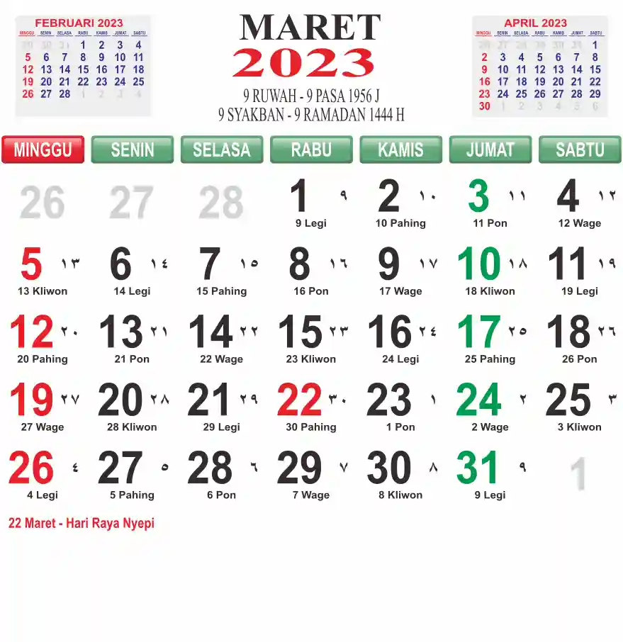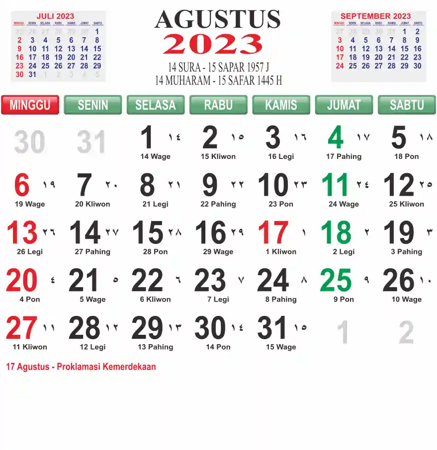 Template kalender 2023 lembaran besar jumbo yang mudah di baca dari jarak jauh. Kalender ini biasanya di cetak 1 lembar per bulan.