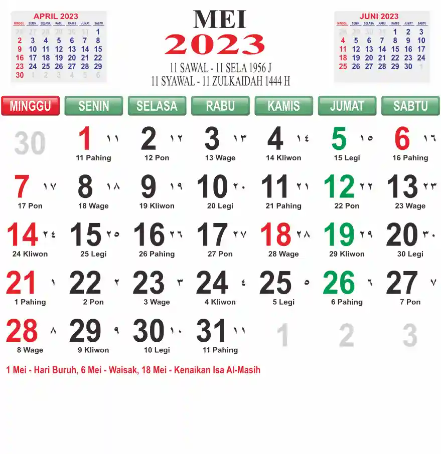 Template Kalender Masehi Vector