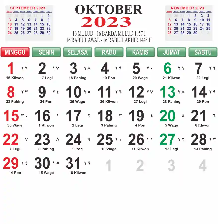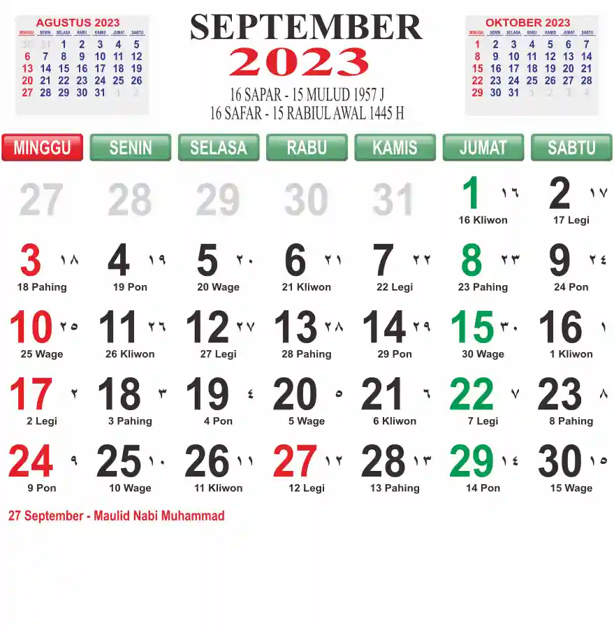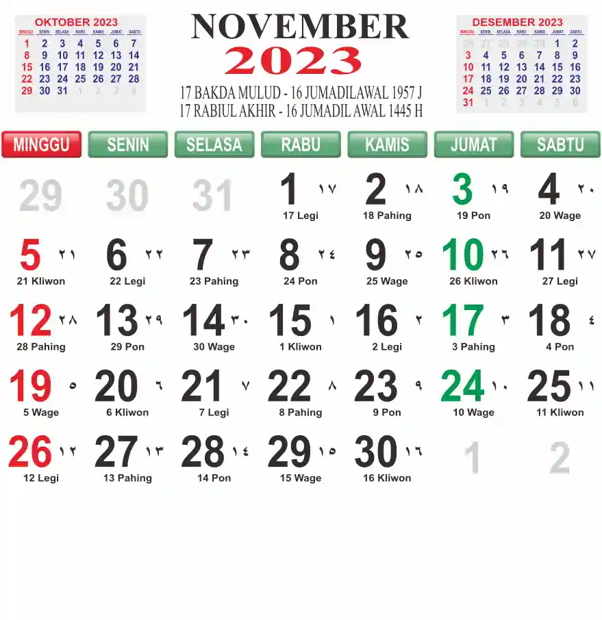 Template Kalender Jawa + Hijriah Vector