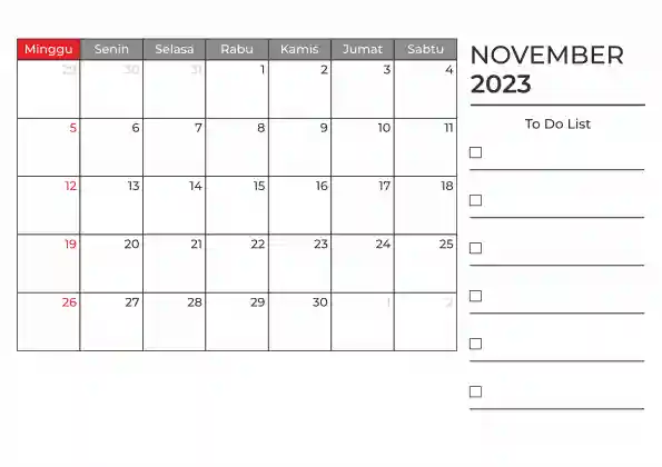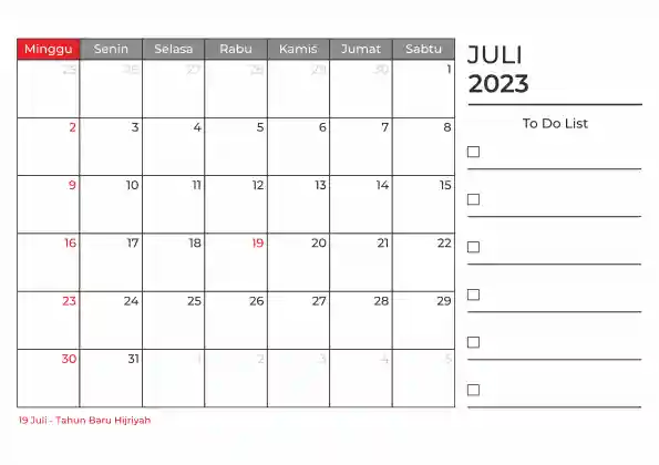 Template kalender 2023 duduk planner. Ada space kosong yang bisa di isi untuk menulis catatan dan ada space untuk menulis to do list.
