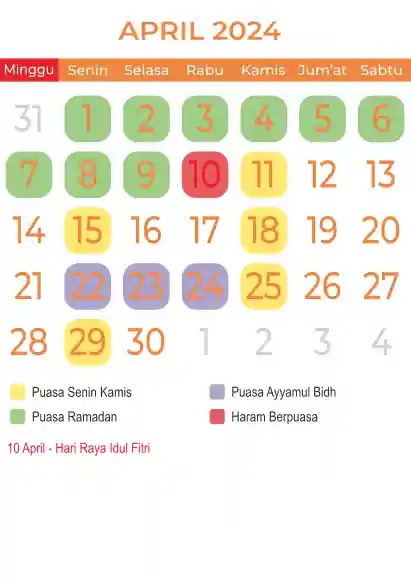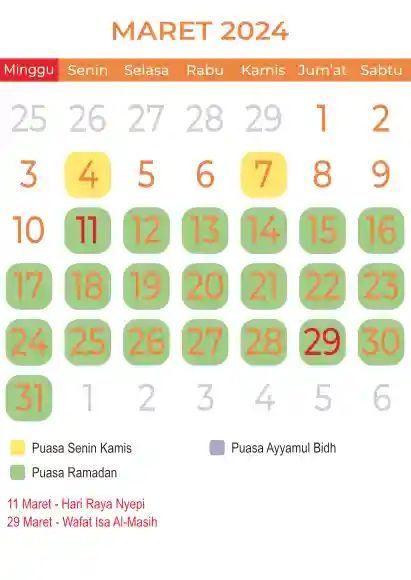 Template kalender puasa 2024, Versi yang lebih simple, cocok sekali buat anda yang ingin cetak kalender yang bermanfat buat umat.