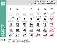 Template kalender 2024 dengan konsep minimalis modern dengan warna yang soft, cocok sekali buat kantor / bisnis seperti bank.