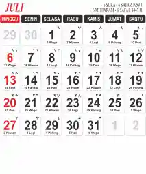 Template Kalender Jawa + Hijriah Vector