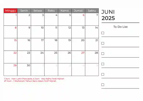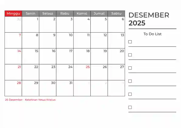 Template kalender 2025 duduk planner. Ada space kosong yang bisa di isi untuk menulis catatan dan ada space untuk menulis to do list.