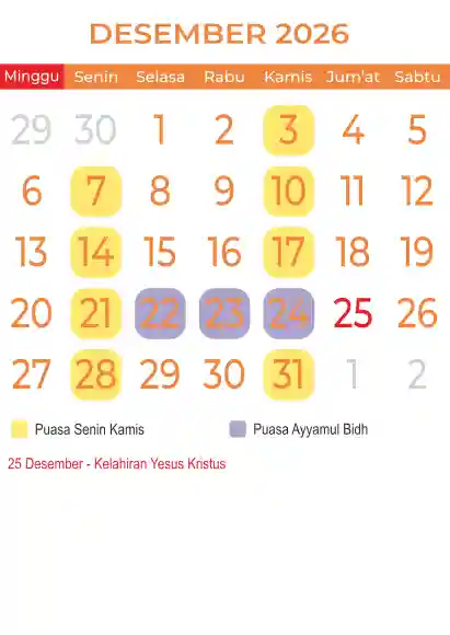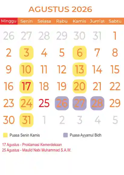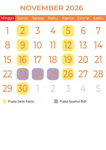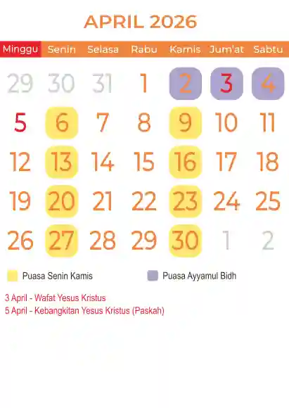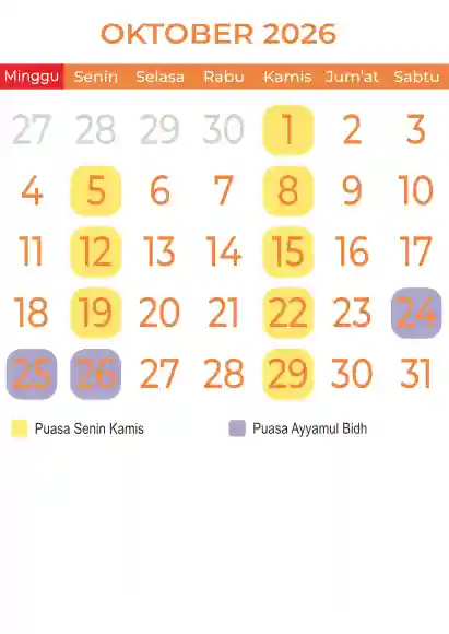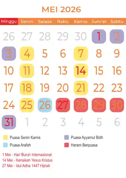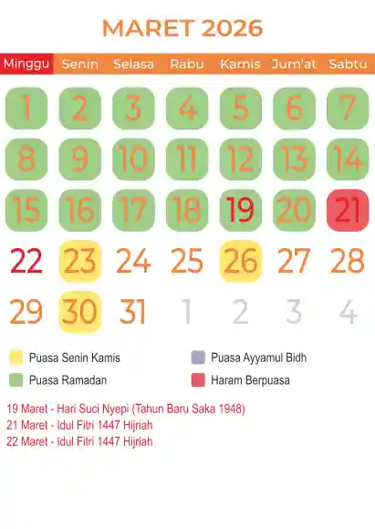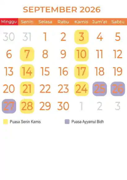 Template kalender puasa 2026, Versi yang lebih simple, cocok sekali buat anda yang ingin cetak kalender yang bermanfat buat umat.