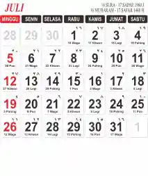 Template Kalender Jawa + Hijriah Vector