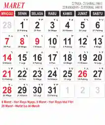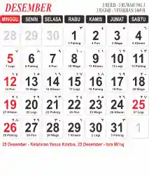 Template Kalender Jawa + Hijriah Vector