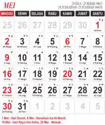 Template Kalender Masehi Vector