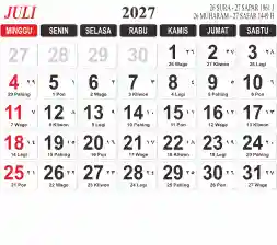 Template Kalender Jawa + Hijriah Vector