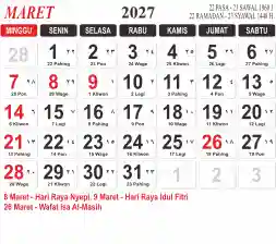 List hari libur tahun 2027 pada Tema 3 (Wide)