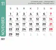 File template kalender 2027 yang editable (bisa anda edit) untuk CorelDRAW, format warna cmyk dan rgb untuk kebutuhan percetakan. Bisa custom hari libur (gunakan fitur tabel dibawah untuk edit).