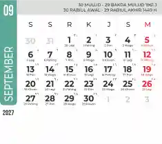 Template kalender 2027 dengan konsep minimalis modern dengan warna yang soft, cocok sekali buat kantor / bisnis seperti bank.