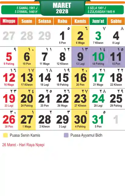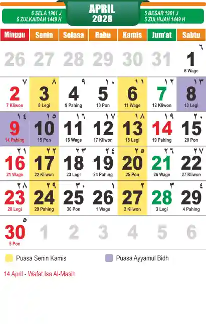 Template kalender puasa 2028, cocok sekali buat anda yang ingin cetak kalender yang bermanfat buat umat.