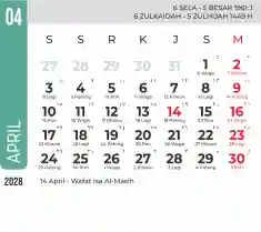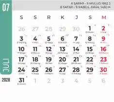 Template kalender 2028 dengan konsep minimalis modern dengan warna yang soft, cocok sekali buat kantor / bisnis seperti bank.