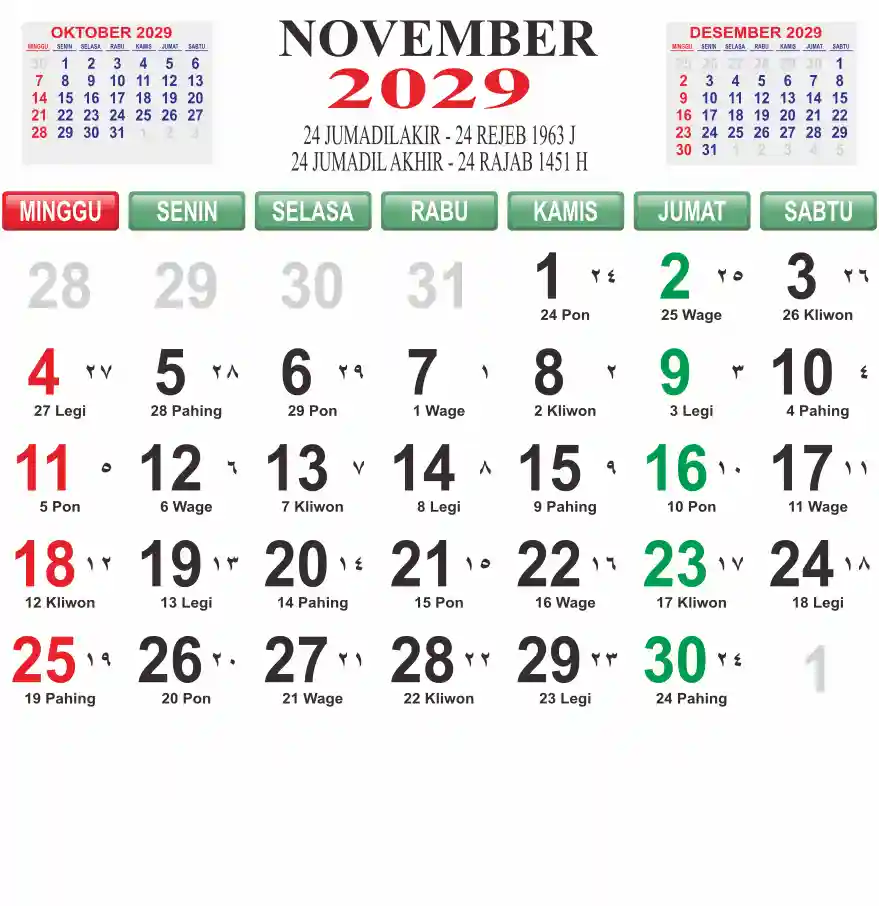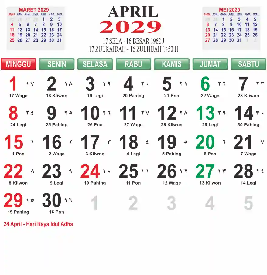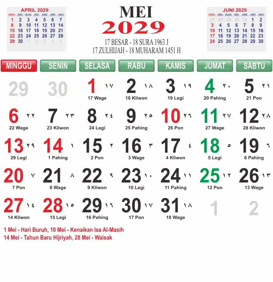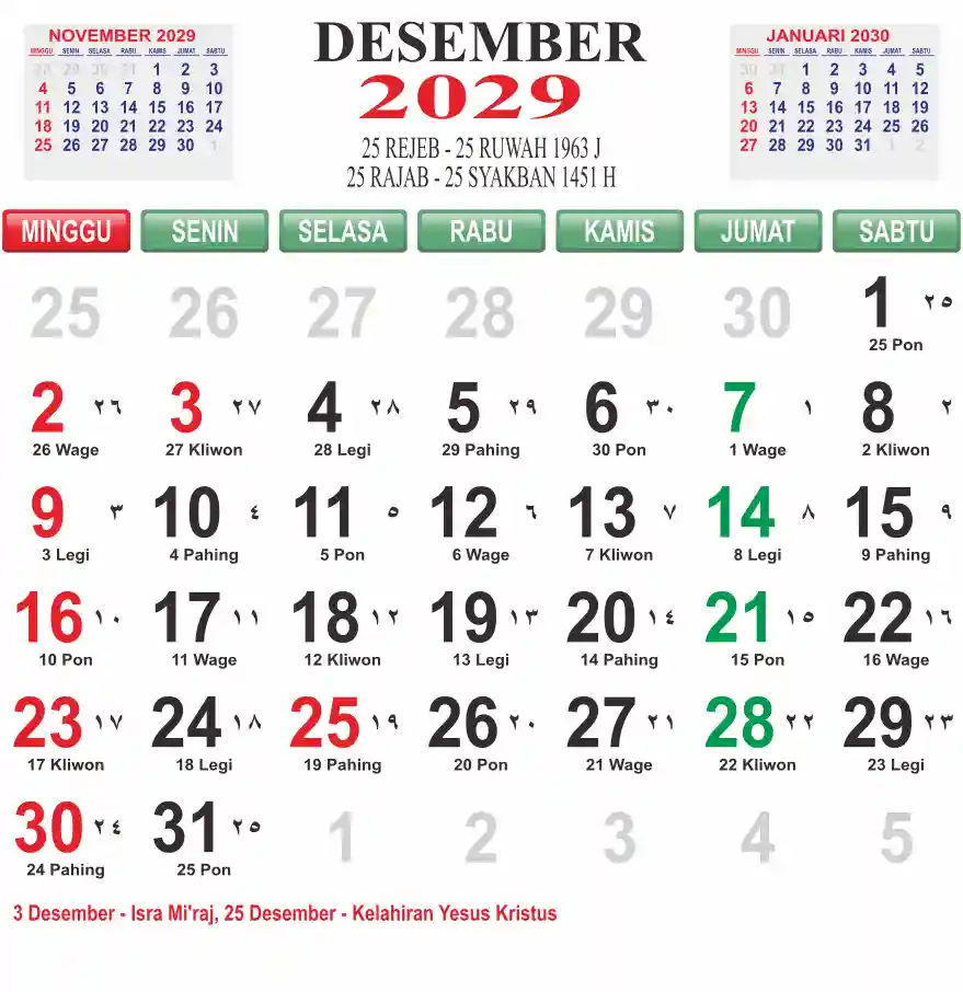 Template kalender 2029 lembaran besar jumbo yang mudah di baca dari jarak jauh. Kalender ini biasanya di cetak 1 lembar per bulan.