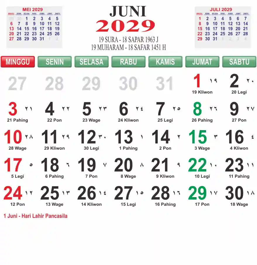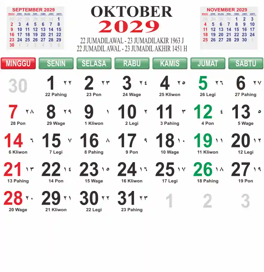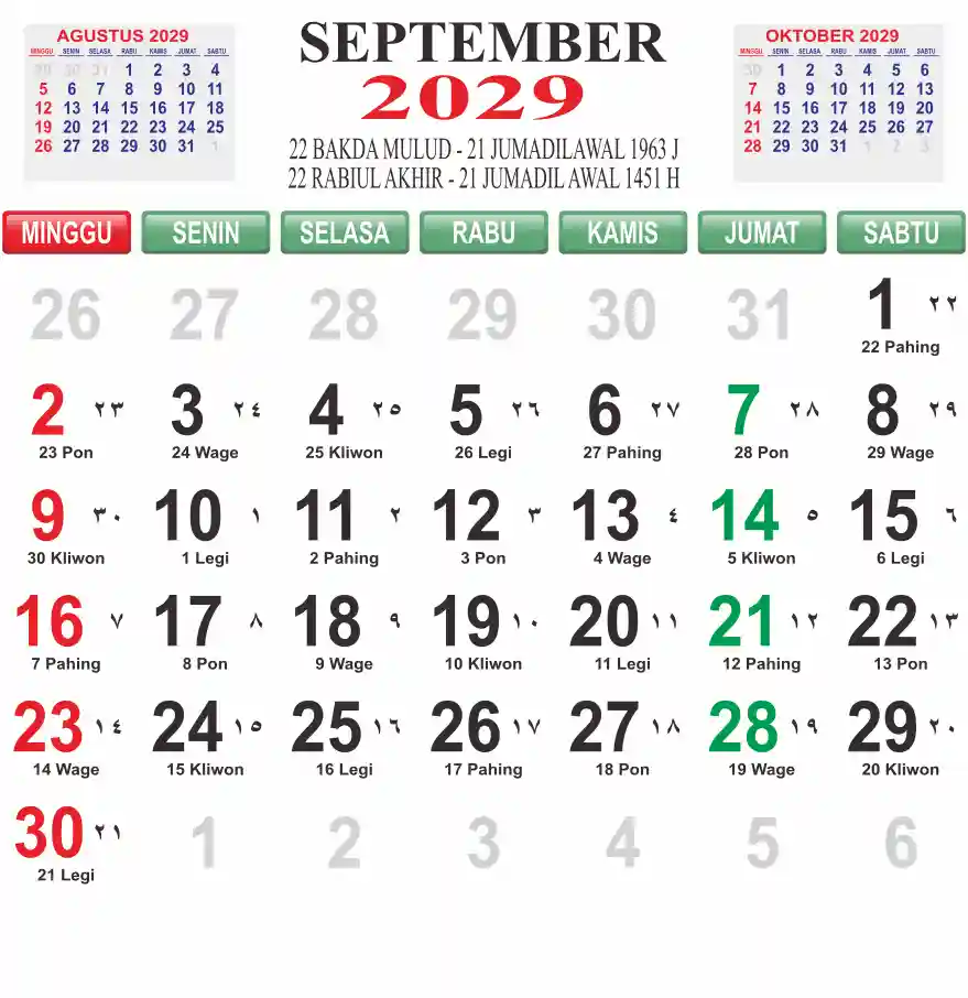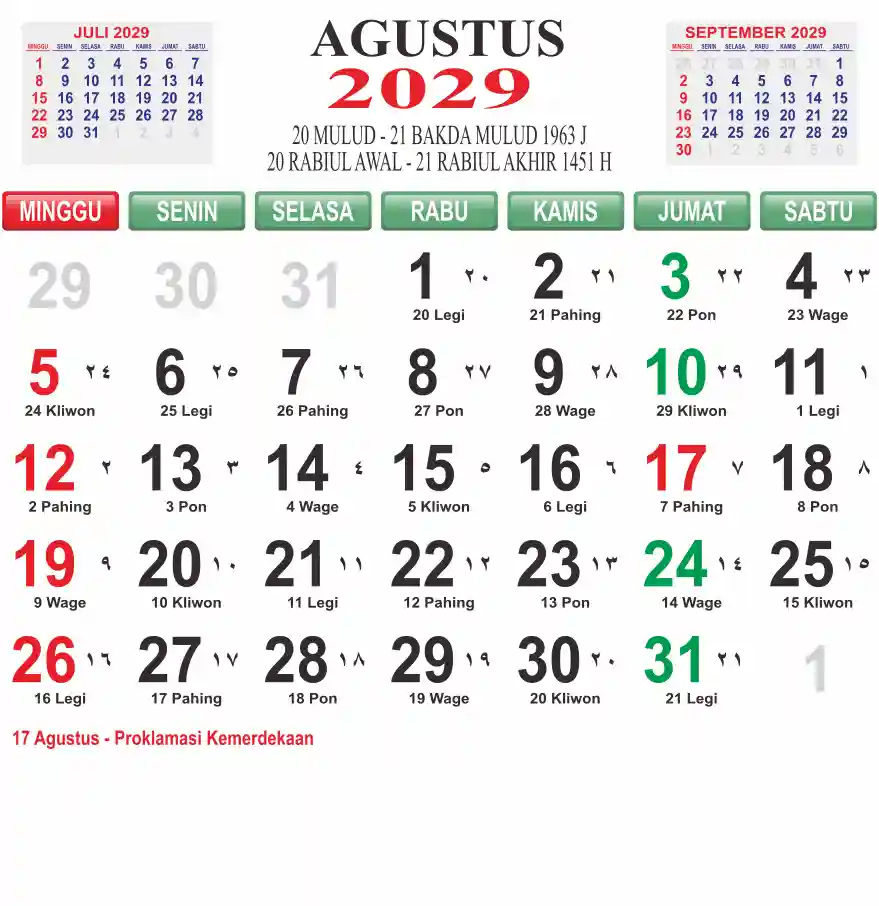 Template kalender 2029 lembaran besar jumbo yang mudah di baca dari jarak jauh. Kalender ini biasanya di cetak 1 lembar per bulan.