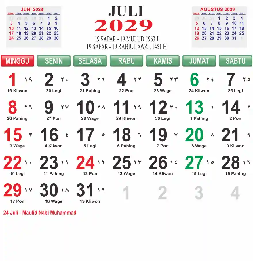 Template Kalender Jawa + Hijriah Vector