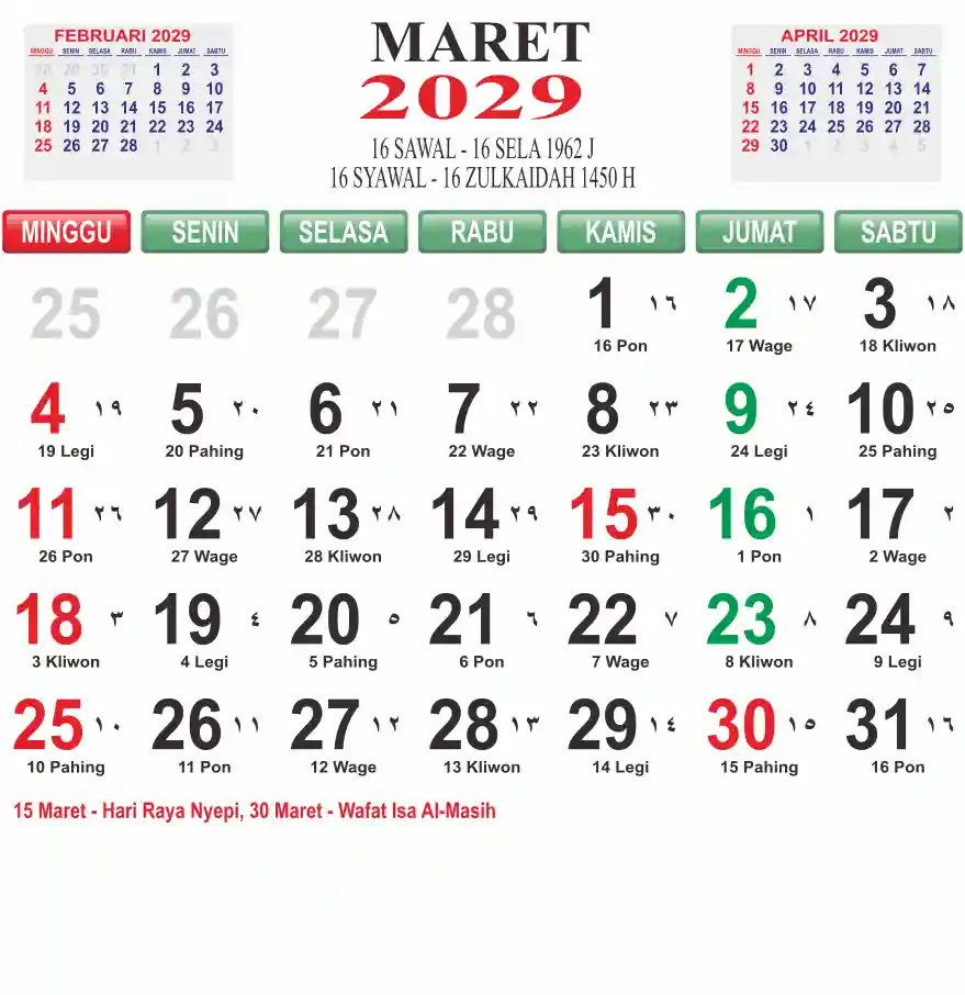 List hari libur tahun 2029 pada Tema 6