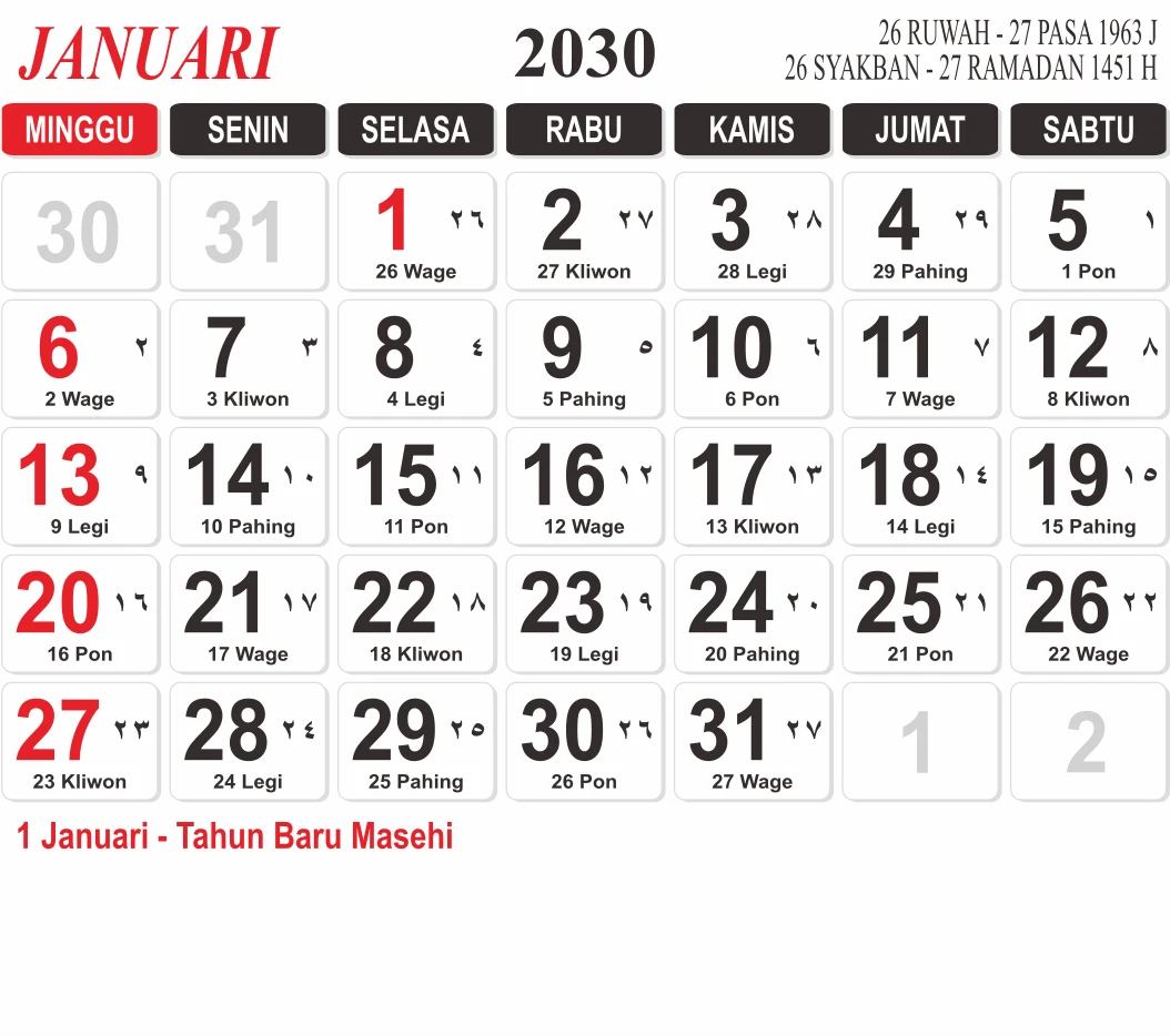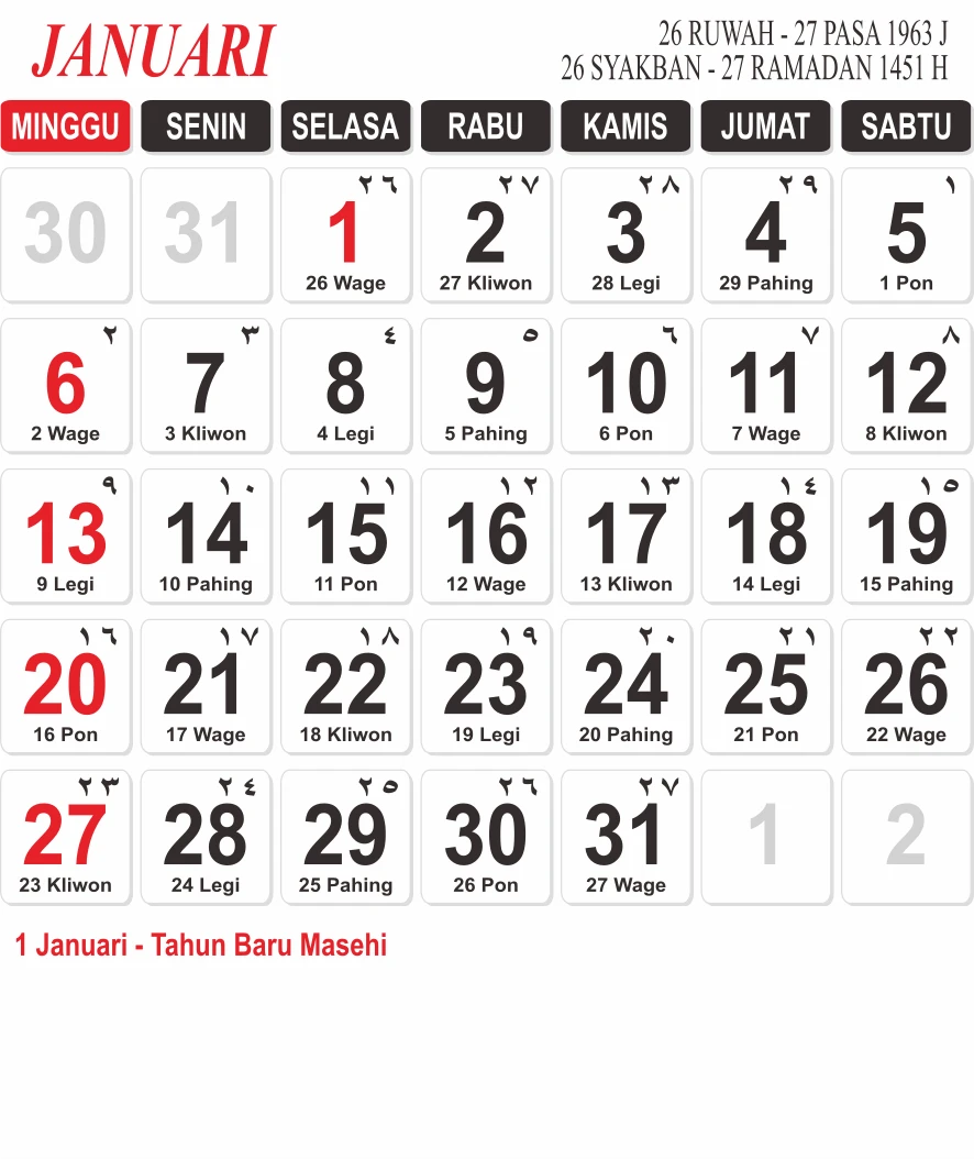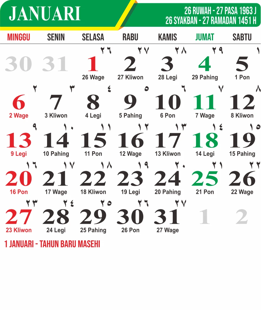 Template Kalender Jawa + Hijriah Vector