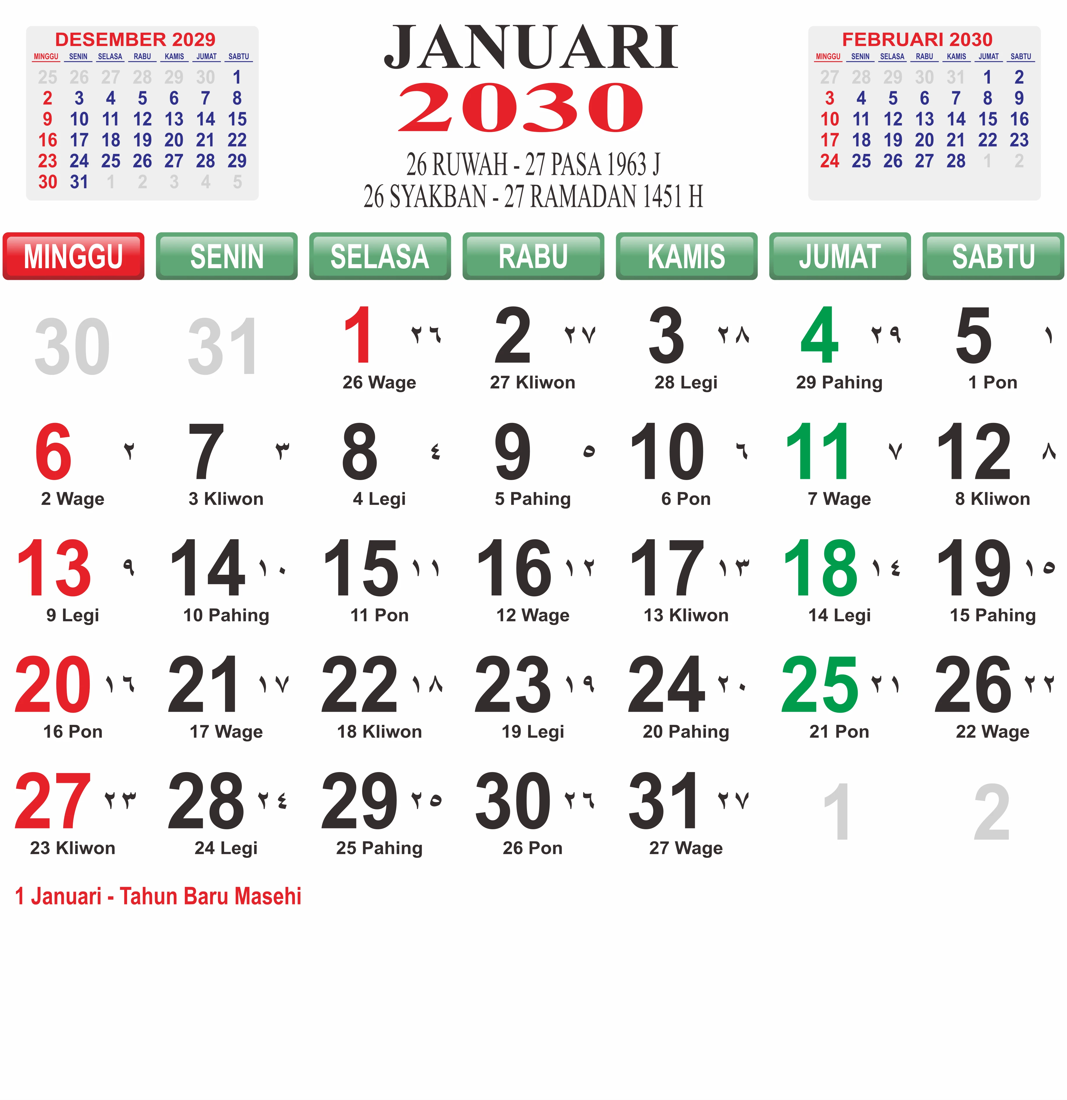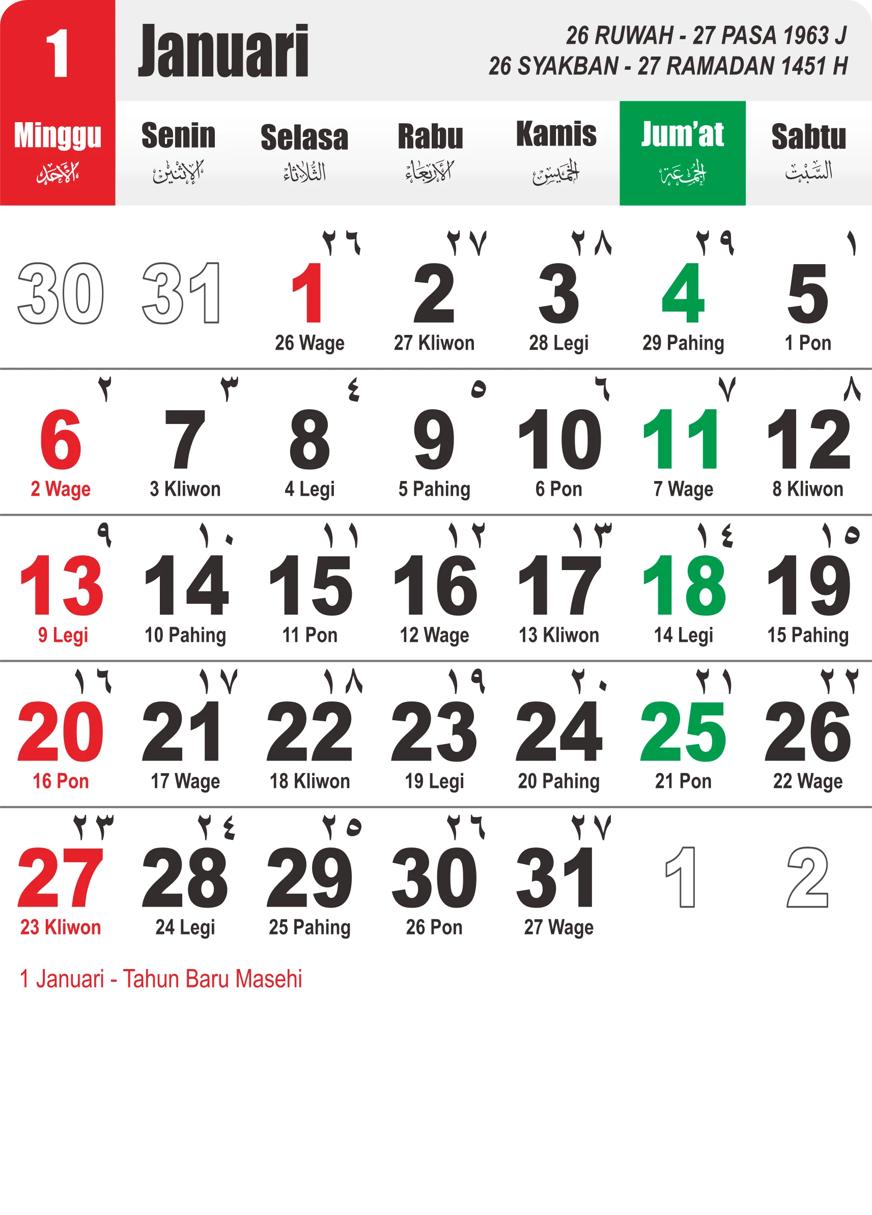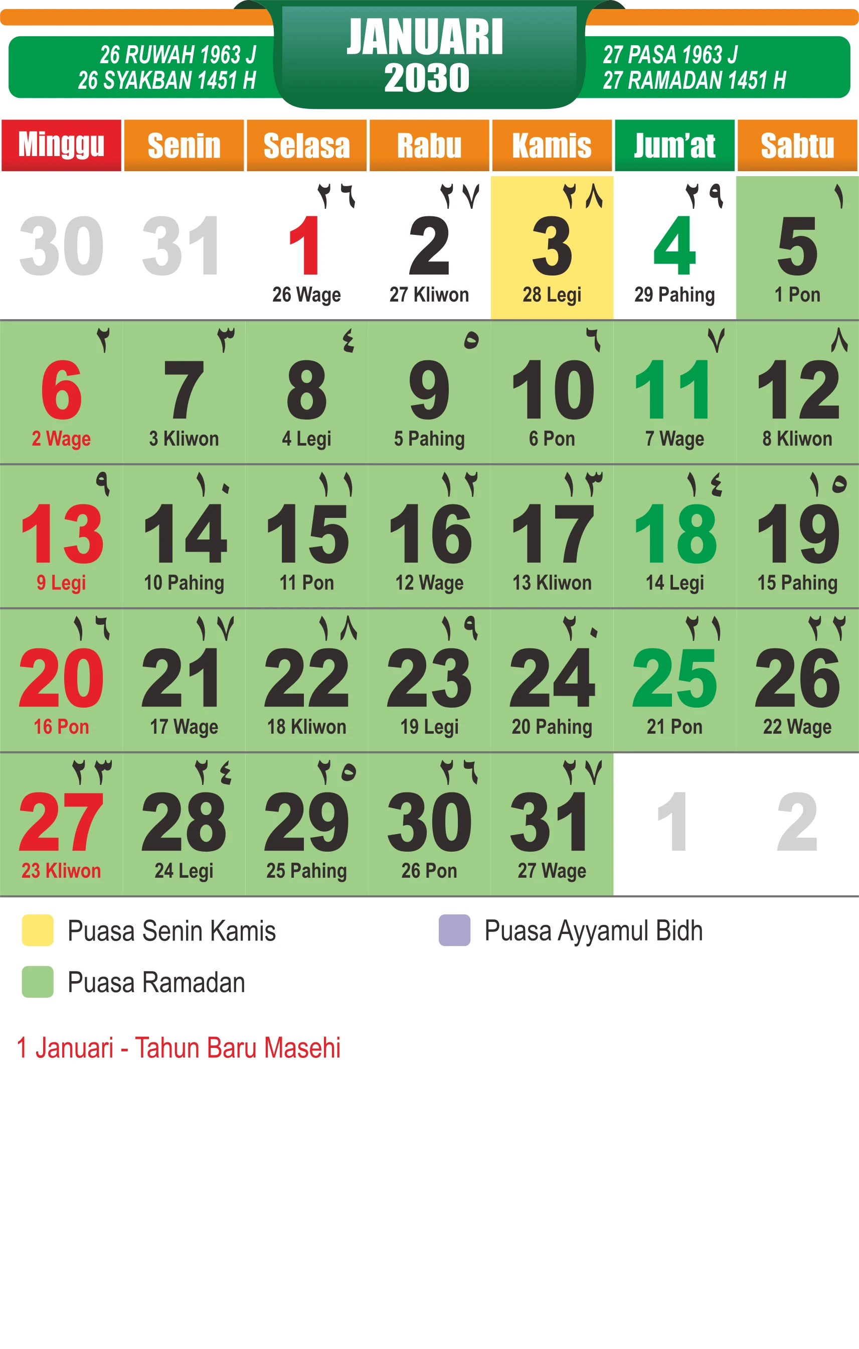 Template Kalender Jawa + Hijriah Vector