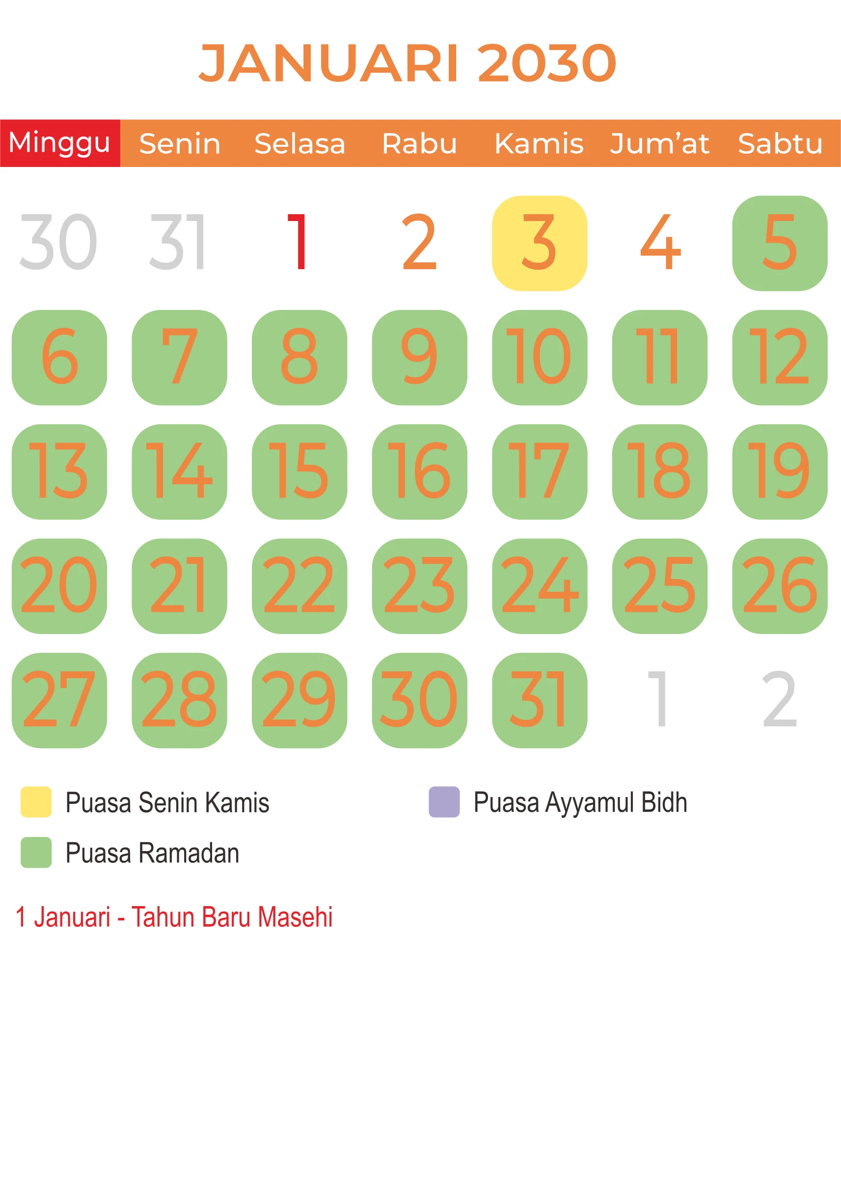 Template Kalender Puasa Vector
