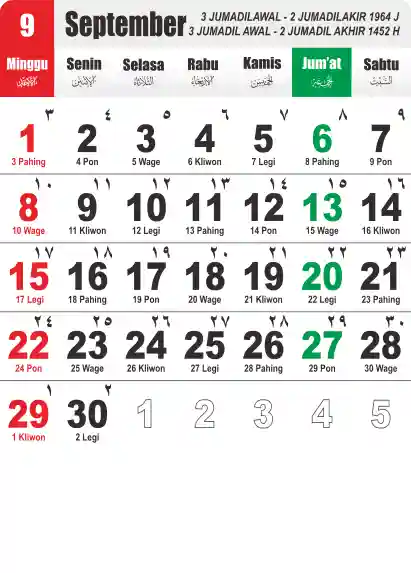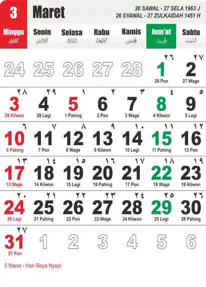 Tema kalender 2030 yang universal cocok untuk desain keperluan bisnis, instansi, sekolah, universitas, lembaga, pesantren. Tema ini sangat simpel namun elegan. Tulisannya kami buat besar agar dapat mudah dibaca.