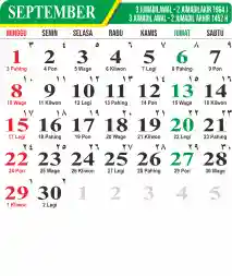 Tema kalender 2030 yang nuansa Islami yang cocok buat pondok pesantren atau lembaga keagamaan. Menggunakan font standar Times New Roman yang mudah dibaca.