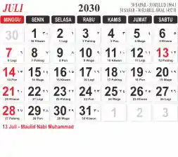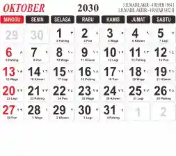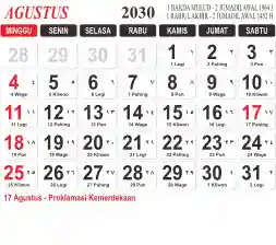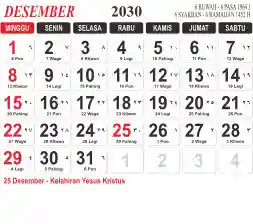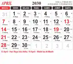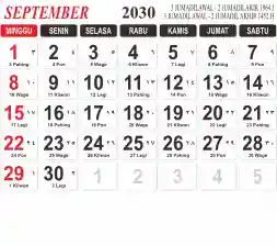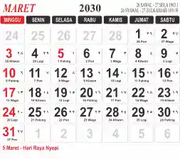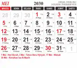 List hari libur tahun 2030 pada Tema 3 (Wide)