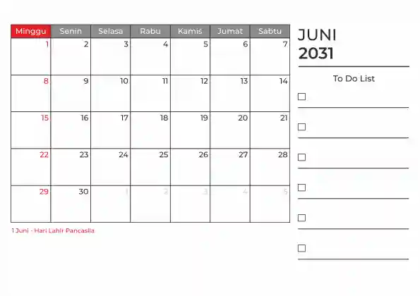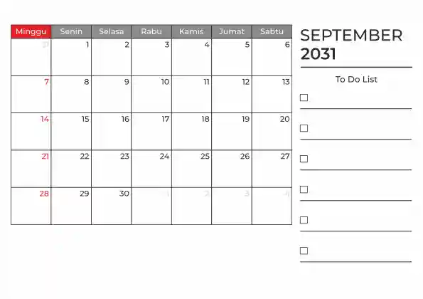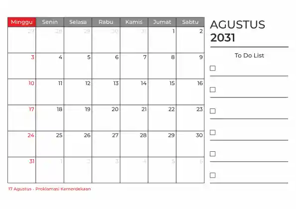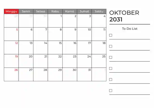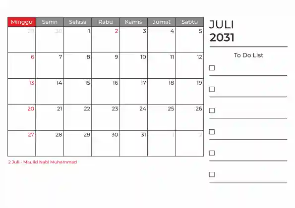 Template kalender 2031 duduk planner. Ada space kosong yang bisa di isi untuk menulis catatan dan ada space untuk menulis to do list.