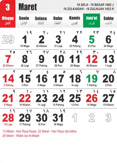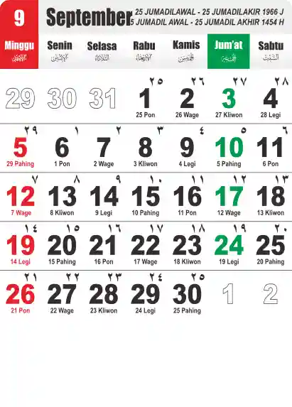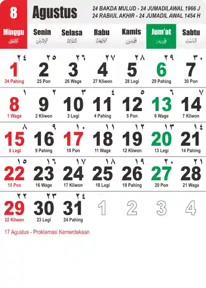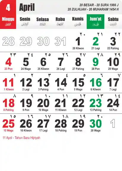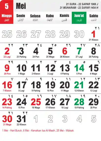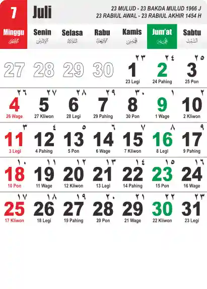 Template Kalender Jawa + Hijriah Vector