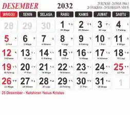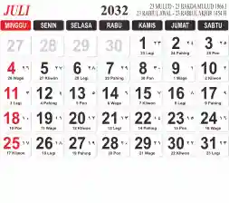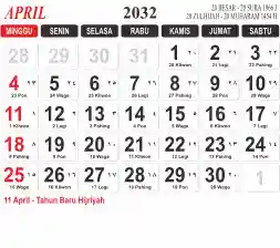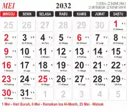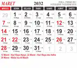 List hari libur tahun 2032 pada Tema 3 (Wide)