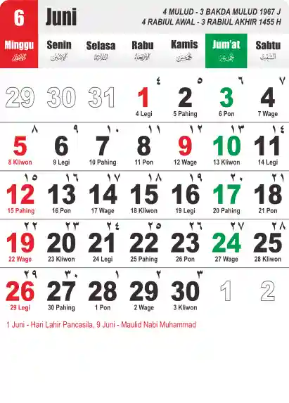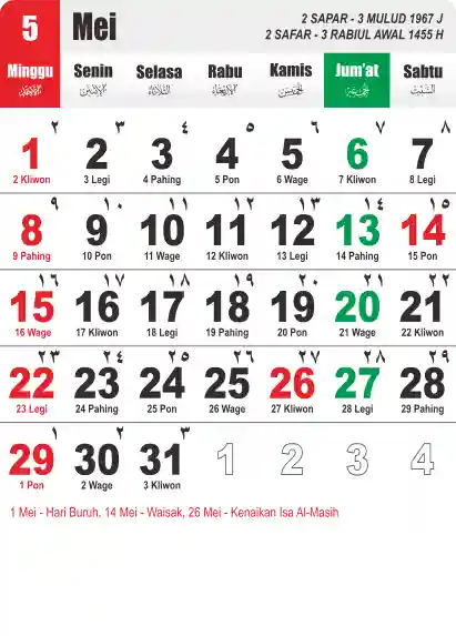 Template Kalender Jawa + Hijriah Vector