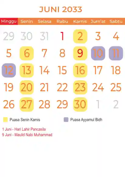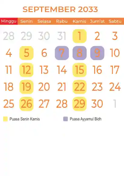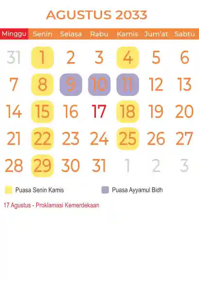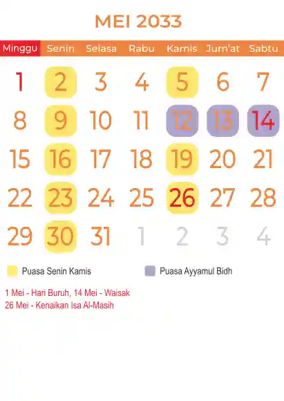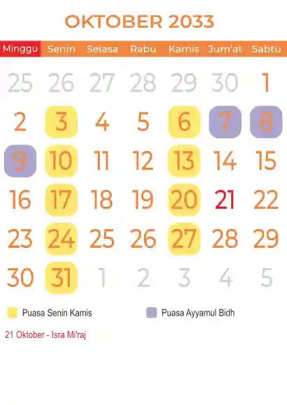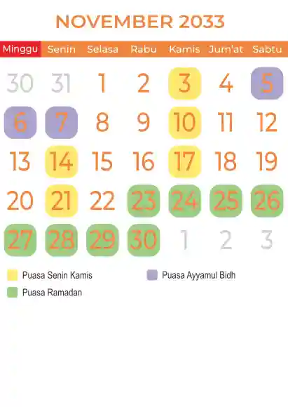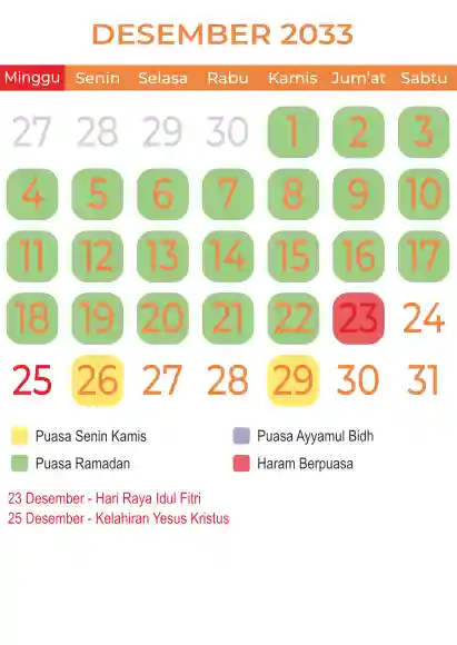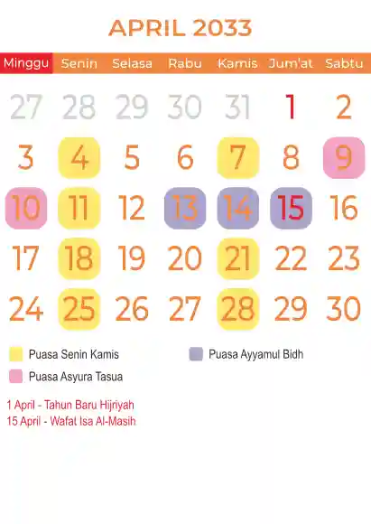Template kalender puasa 2033, Versi yang lebih simple, cocok sekali buat anda yang ingin cetak kalender yang bermanfat buat umat.